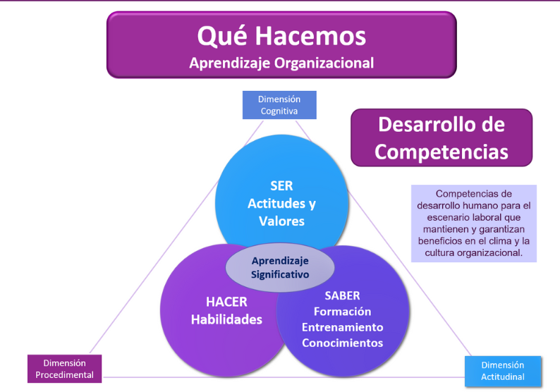 No siendo esto suficiente, es importante aclarar que es de suma importancia desde la generación del direccionamiento estratégico de la organización, tener en cuenta el aprendizaje organizacional que se refiere al desarrollo y crecimiento técnico-profesional y desarrollo de competencias de los colaboradores al interior para la empresa y para el mundo. Esta forma de administrar el talento humano parte del individuo e impacta el colectivo, facilitando los logros de objetivos, lo que nos permite propiciar también el desarrollo humano individual y lograr con esto personas competentes & empresas competitivas.